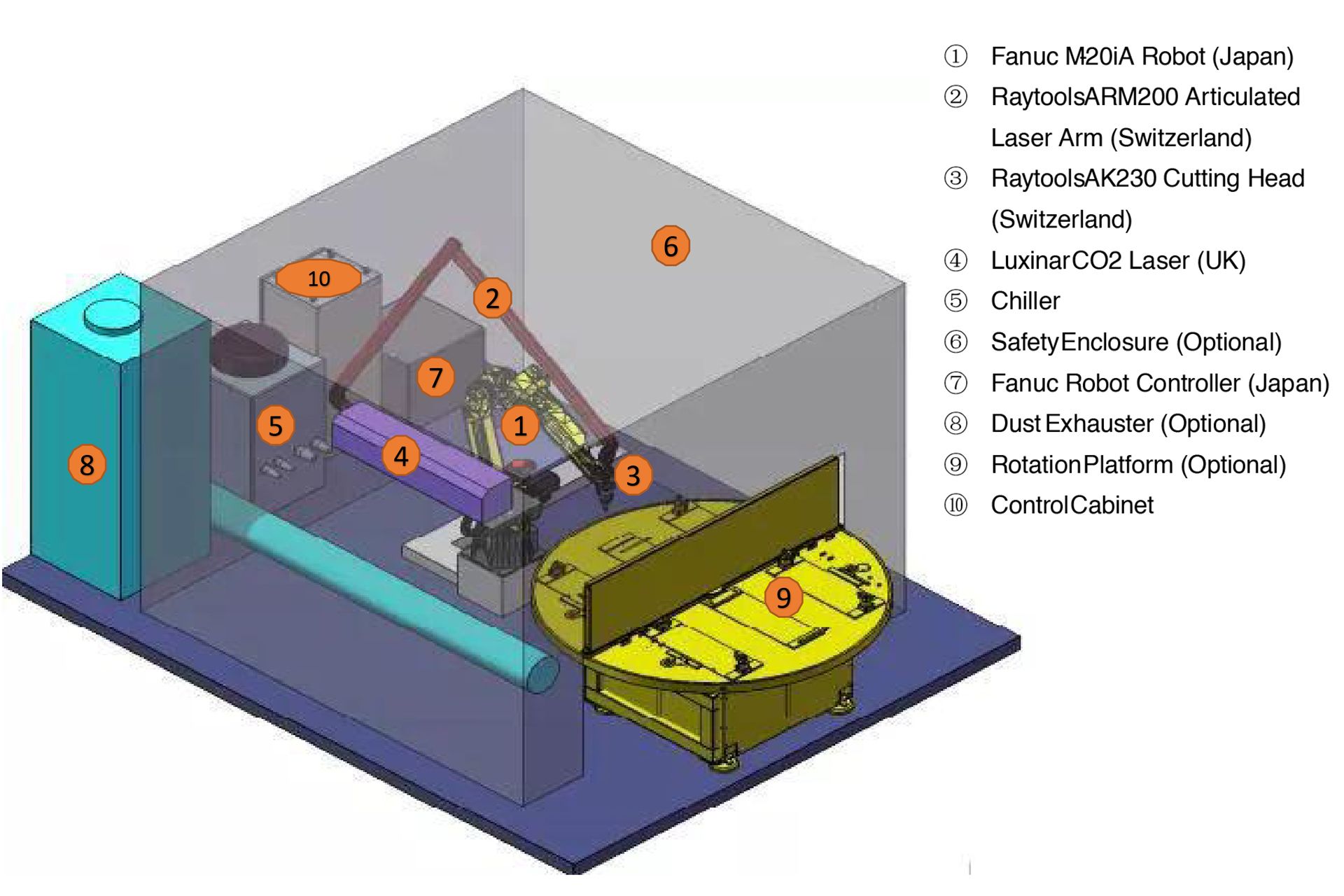 World leading core components like Luxinar laser, Fanuc robot and Raytools cutting head.