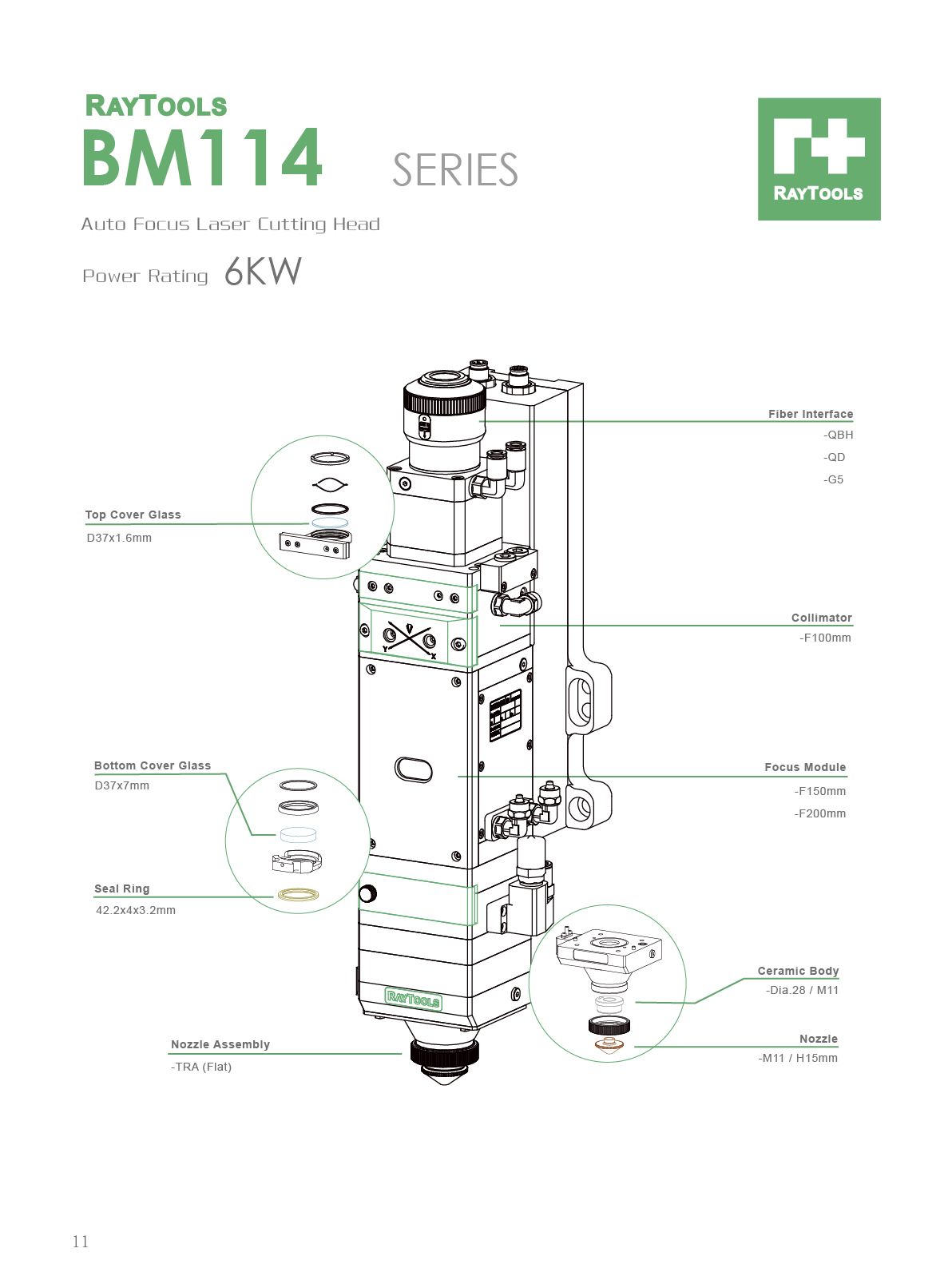Rated to 6kW @ 1um, with D37 lens combo for thick plate cutting.