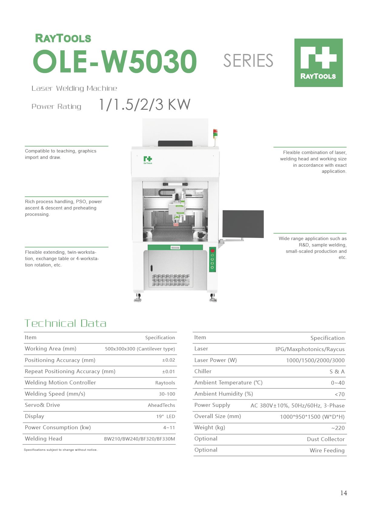 X/Y/Z laser welding with working size 500x300mm, cantilever type.