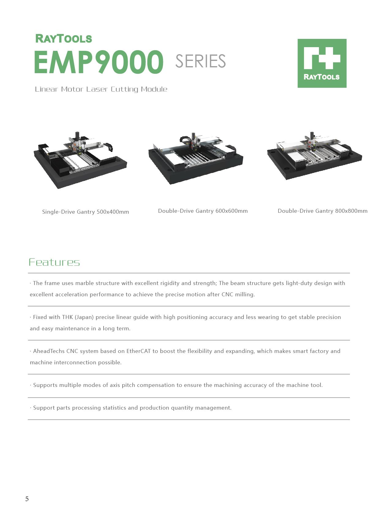 Single-Drive Gantry 500x400mm; Double-Drive Gantry 600x600mm; Double-Drive Gantry 800x800mm.