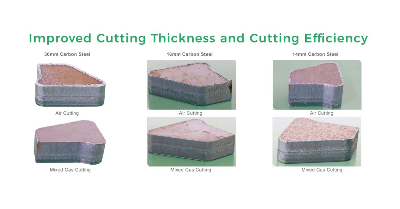 More than 2X cutting speed to mild steel comparing to O2 gas cutting.