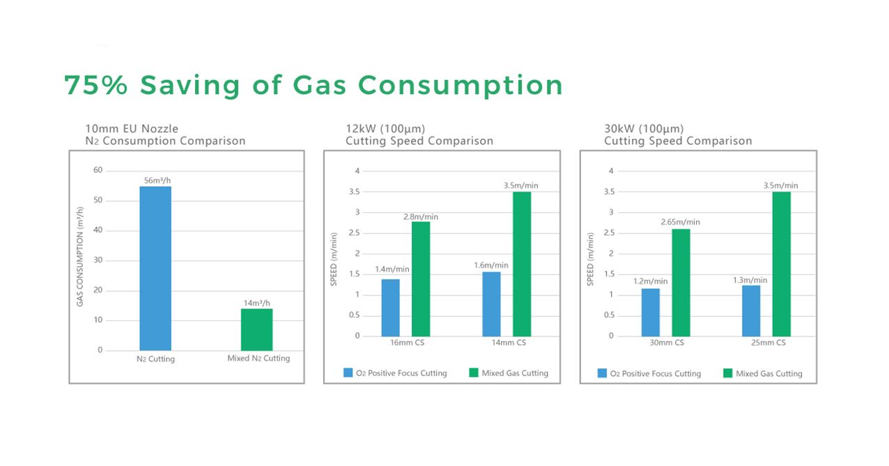 75% Saving of gas consumption comparing to N2 gas cutting.