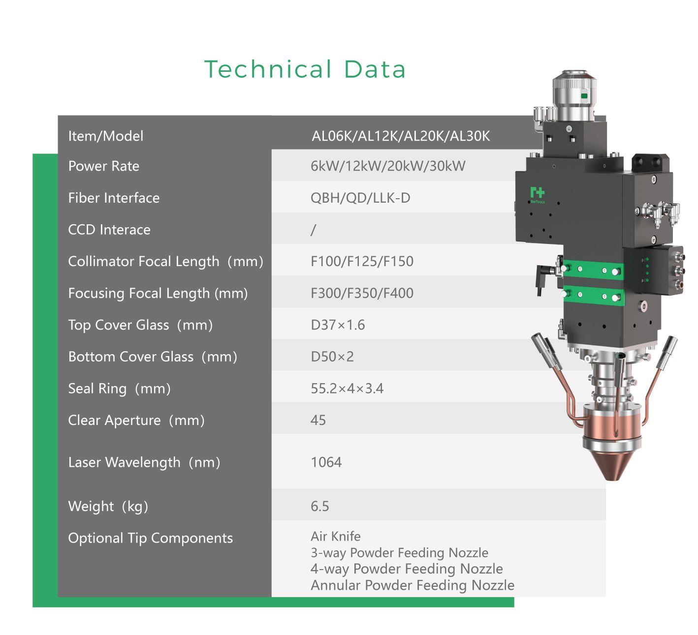 AL06K/AL12K/AL20K/AL30K Laser Processing Head (Cladding/Welding, Formerly as AK390TC/AK390BW)